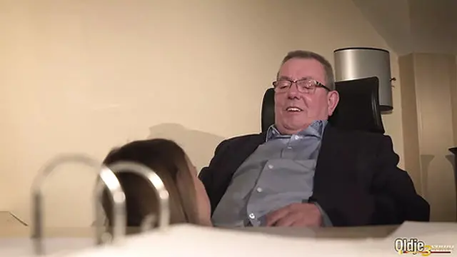 Secretary caught coworker sucking the old boss under desk