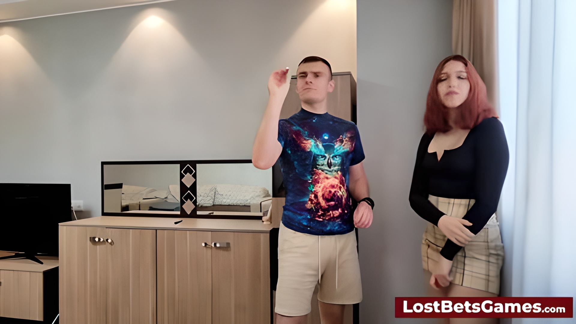 Aften Opal - Steaming redheads take off shirts as darts lead to sultry blowjobs