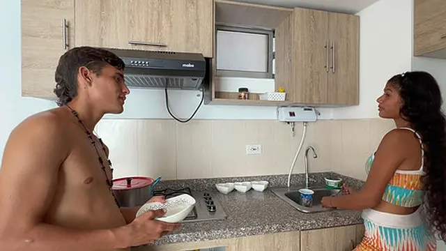 My Shy Stepsister Washes My Dish for Me in Exchange for Me Fucking Her Very Hard with My Huge Penis H l