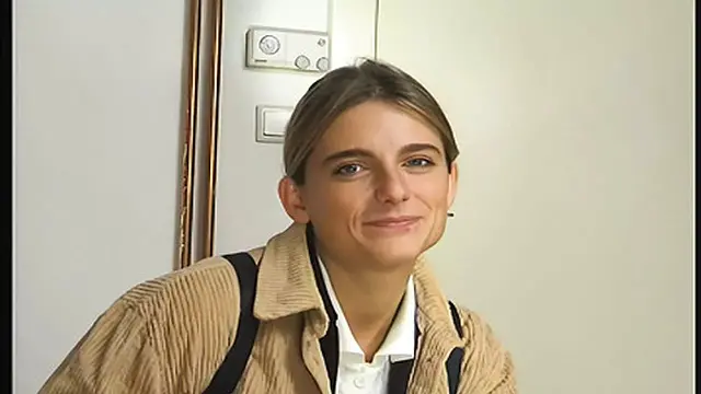 A young German teen spreads her legs on a table and gives a sloppy blowjob to an older man. She humps his cock as she devours him, making him cum all over her face.