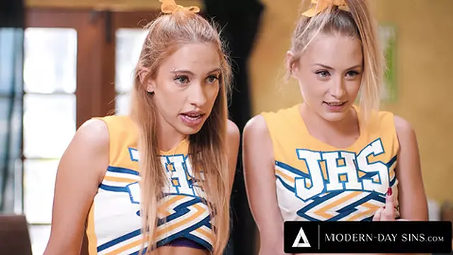 Modern-day sins unfold as teen cheerleaders Kyler Quinn and Khloe Kapri swap their coach's massive load. Kyler's small boobs bounce as she performs a handsjob, while Khloe's pussy gets licked. They both get anally fucked and vaginally fucked, their biggest pussies taking all of the biggest load. Both cheerleaders swallow the cum swap, ending in a big cumshot.