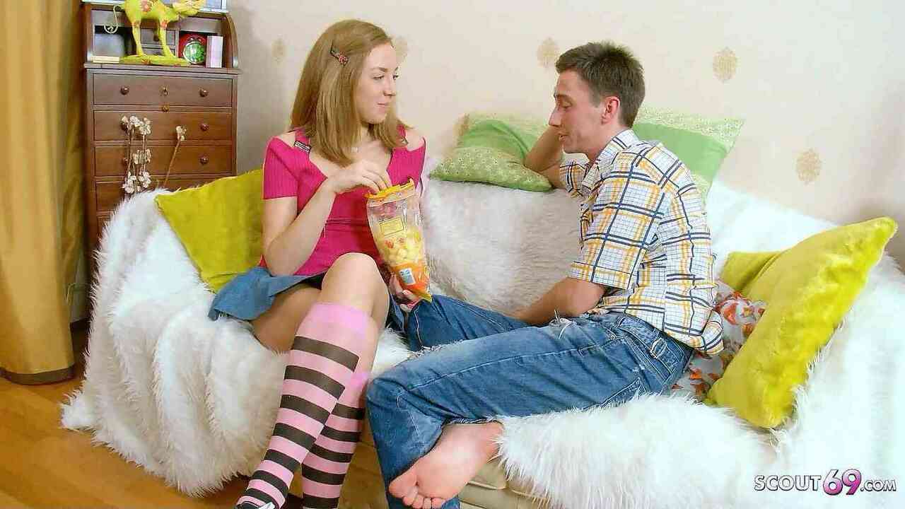 Skinny girl seduces 18-year-old virgin to defloration sex